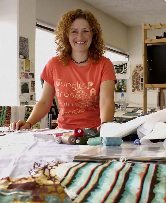 Recording the physical environment through drawing, painting and photography, Lane selects images, digitally manipulates them, and uses this as the building block of a unique, printed textile montage.